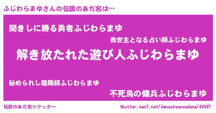 | 意味不明あだ名 | 『とにかく怪しいふじわらまゆ』 |