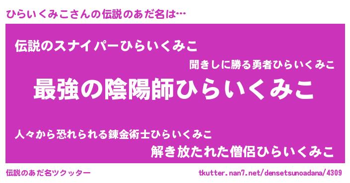| ファンタジー風あだ名 | 『エターナルヒライクミコー』 |