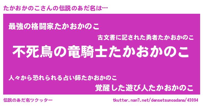 | 意味不明あだ名 | 『自称たかおかのこ』 |