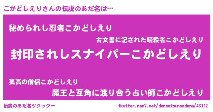 | 意味不明あだ名 | 『ペロリンこかどしえり』 |