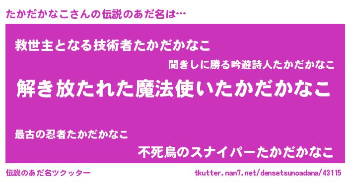 | ヒーロー風カッコイイあだ名 | 『仮面タカダー』『銀牙騎士タカ』 |