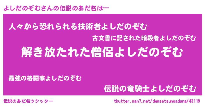 | 意味不明あだ名 | 『なめこ科よしだのぞむ属』 |