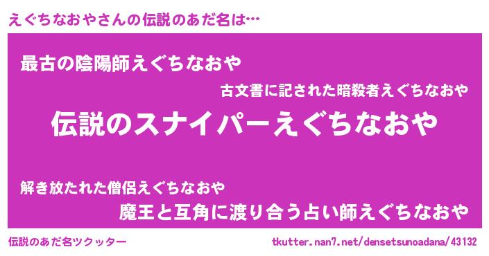 | 女子向けラノベタイトル風あだ名 | 『(仮)えぐちなおやのやんごとなき事情』 |