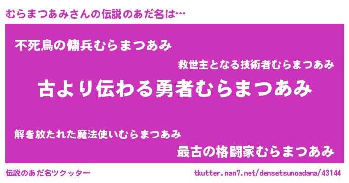 | 意味不明あだ名 | 『永久保存むらまつあみ』 |