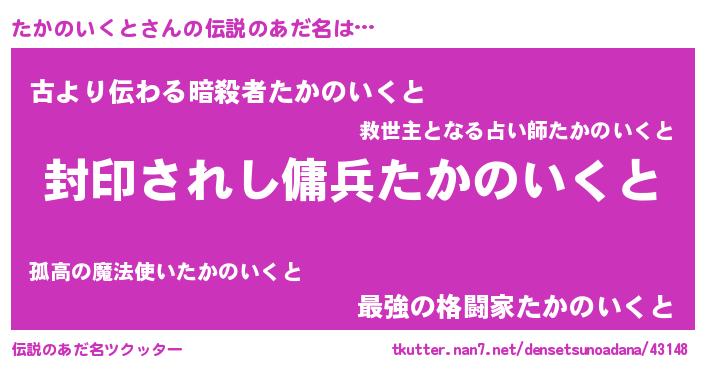 | ヒーロー風カッコイイあだ名 | 『スーパータカノイクト』『仮面タカダー』 |