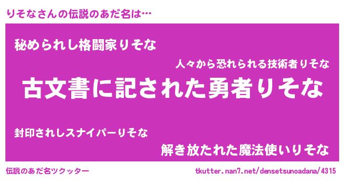 意味不明あだ名 | 『自称りそな』『永久保存りそな』 |