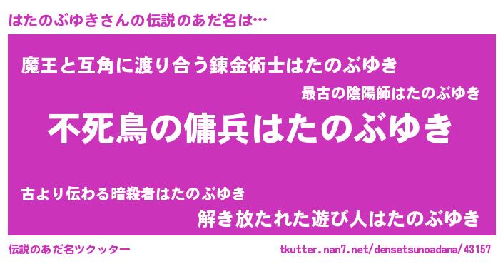 | ヒーロー風カッコイイあだ名 | 『スーパーハタノブユキ』『幻影騎士ハタ』 |