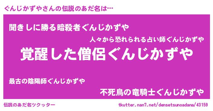 | ヘコむあだ名 | 『ぐん太郎』『ぐんじかずや(爆)』 |