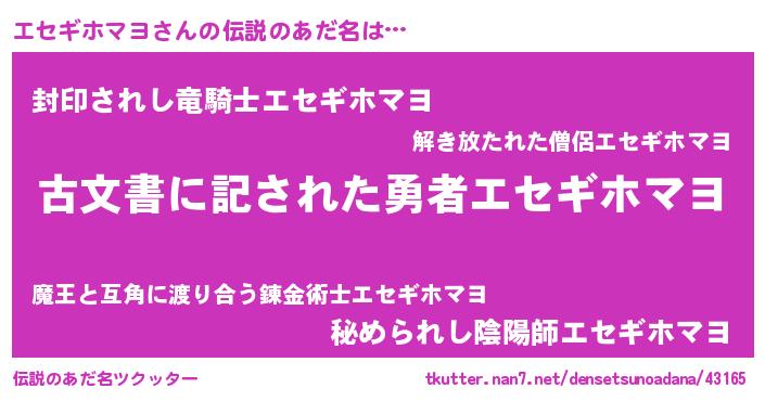| ヒーロー風カッコイイあだ名 | 『仮面エセダー』『ネオエセギホマヨ』 |