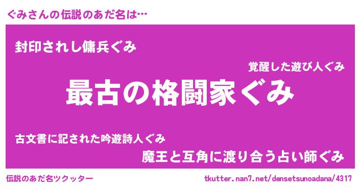 | ヒーロー風カッコイイあだ名 | 『ウルトラぐみマン』『スーパーグミ』 |