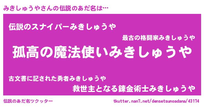 | 女子向けラノベタイトル風あだ名 | 『みきしゅうやは平凡を望む』 |