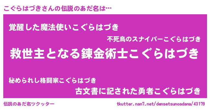 | ヘコむあだ名 | 『こぐっぺ』『こぐらはづき(遠い目)』 |