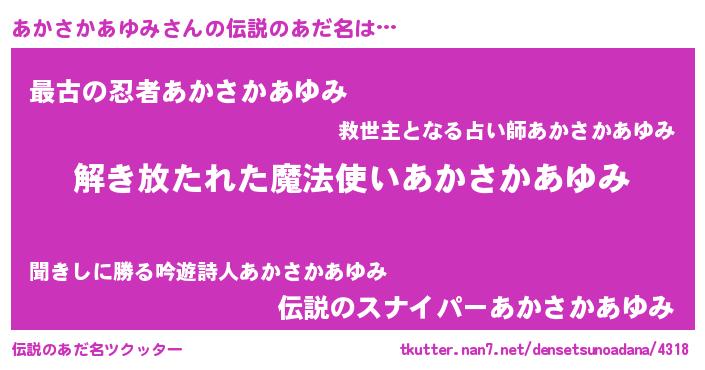 | 欧米人風あだ名 | 『トリンドルあかさかあゆみ』 |