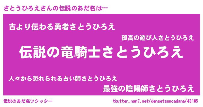 | 男性向けラノベタイトル風あだ名 | 『サトウヒロエスレイヤー』 |