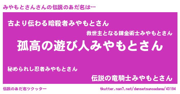 | 意味不明あだ名 | 『自称みやもとさん』 |