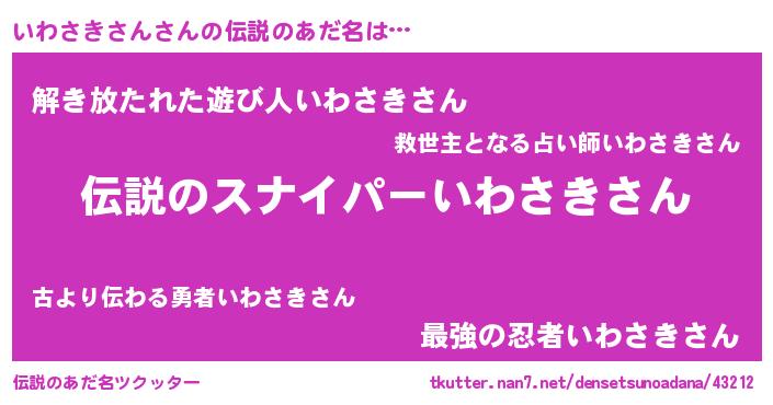 | 胡散臭い通販商品みたいなあだ名 | 『必ず成功する霊験あらたかなお札…その名も「いわさきさん」』 |