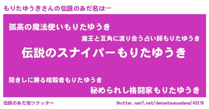 | 胡散臭い通販商品みたいなあだ名 | 『必ず成功する霊験あらたかなお札…その名も「もりたゆうき」』 |