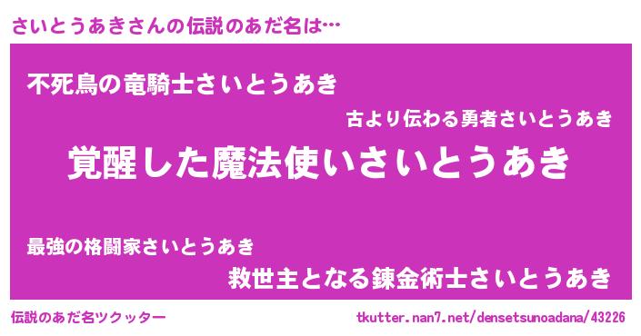 | 胡散臭い通販商品みたいなあだ名 | 『全米が絶賛したサプリメント…その名も「さいとうあき」』 |