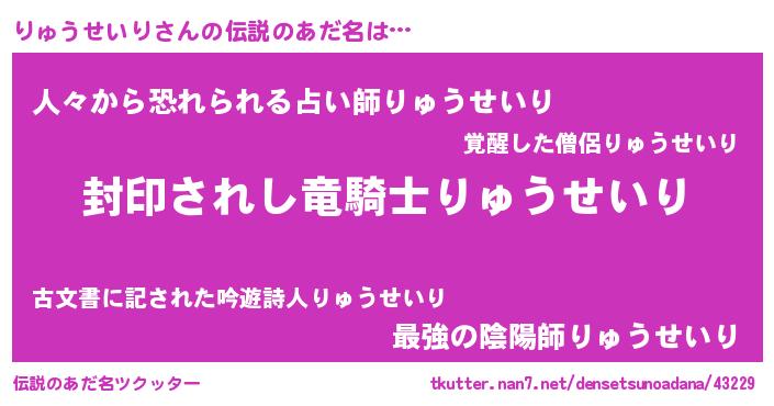 | ヒーロー風カッコイイあだ名 | 『仮面リュダー』『スーパーリュウセイリ』 |