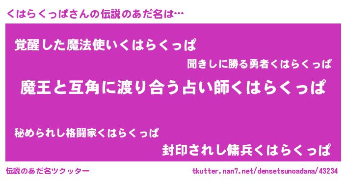 | ヒーロー風カッコイイあだ名 | 『慈愛の使者くはらくっぱ』 |