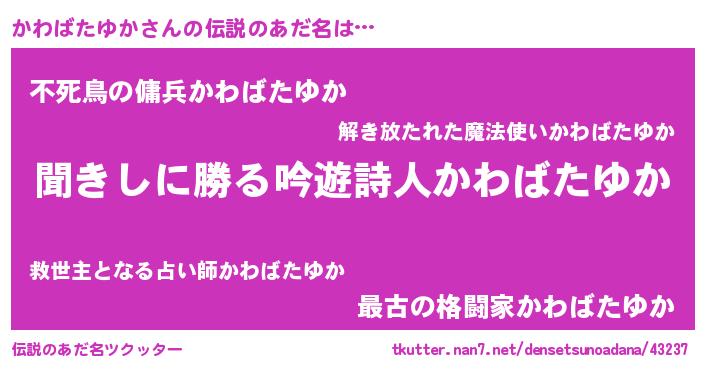| 意味不明あだ名 | 『永久保存かわばたゆか』 |
