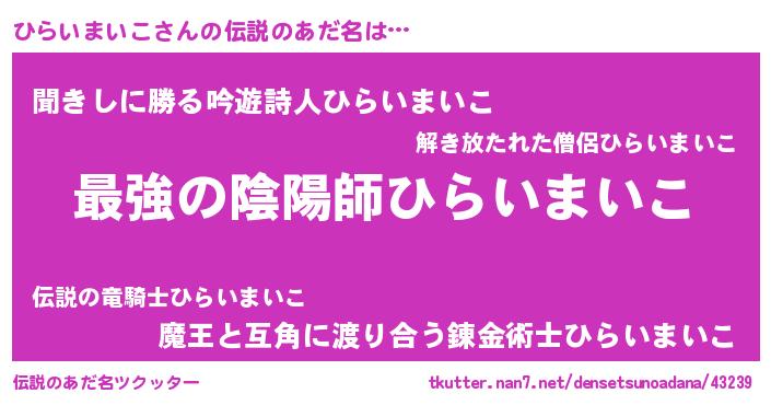 | ファンタジー風あだ名 | 『エターナルヒライマイコー』 |