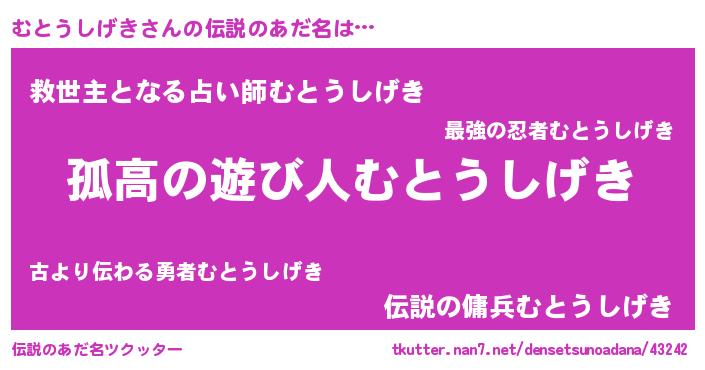 | 意味不明あだ名 | 『とにかく怪しいむとうしげき』 |