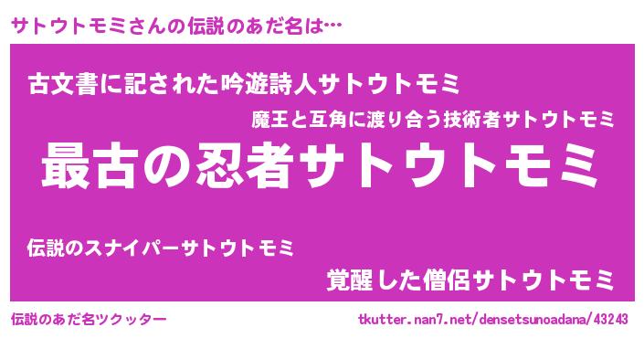 | 意味不明あだ名 | 『サトウトモミフォーエバー』 |
