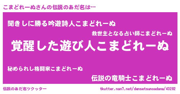 | 意味不明あだ名 | 『とにかく怪しいこまどれーぬ』 |