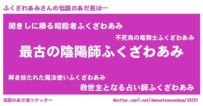 | 男性向けラノベタイトル風あだ名 | 『転生したらふくざわあみだった件』 |