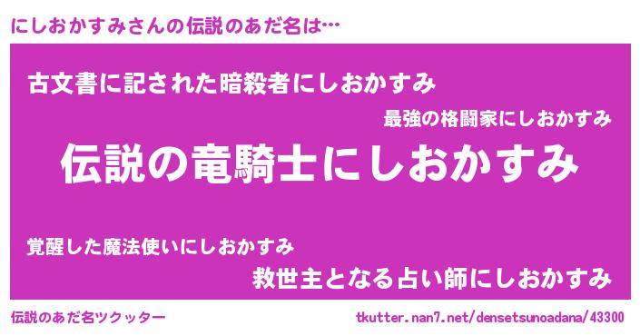 | 男性向けラノベタイトル風あだ名 | 『にしおかすみの憂鬱』 |
