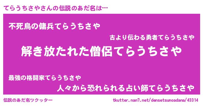 | ヒーロー風カッコイイあだ名 | 『魔戒騎士テラ』『スーパーテラウチサヤ』 |