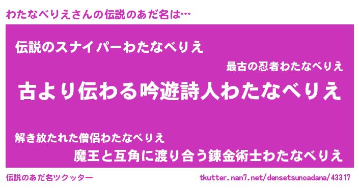 | 意味不明あだ名 | 『永久保存わたなべりえ』 |
