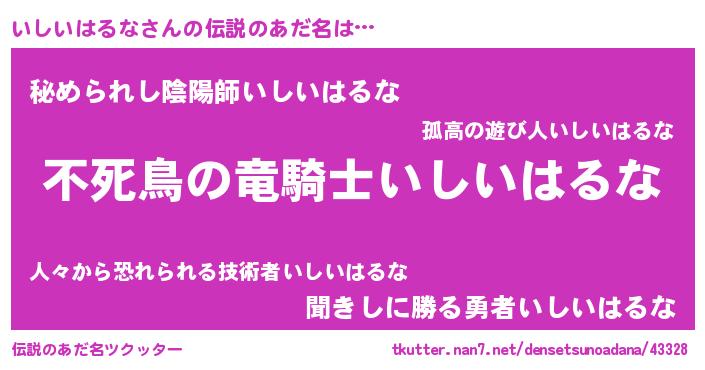 | 胡散臭い通販商品みたいなあだ名 | 『モテモテ間違いなしブレスレット…その名も「いしいはるな」』 |