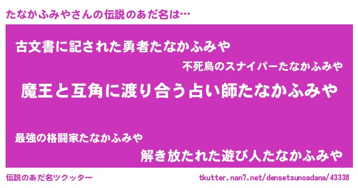 | 女子向けラノベタイトル風あだ名 | 『たなかふみや恋絵巻』 |