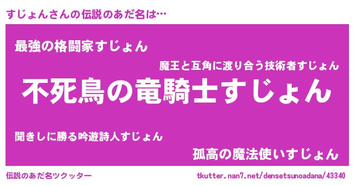 | 男性向けラノベタイトル風あだ名 | 『すじょんに滅ぼされるだけの簡単なお仕事です』 |