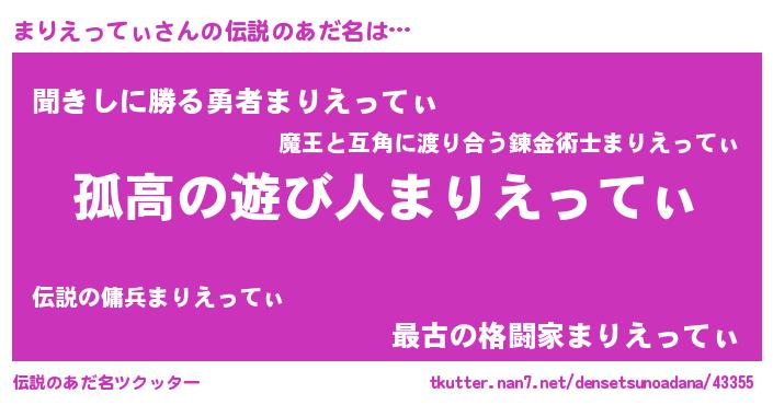 | 意味不明あだ名 | 『とにかく怪しいまりえってぃ』 |