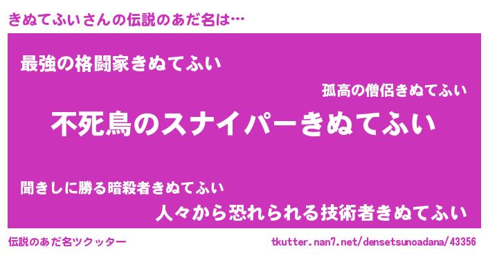 | 男性向けラノベタイトル風あだ名 | 『転生したらきぬてふいだった件』 |