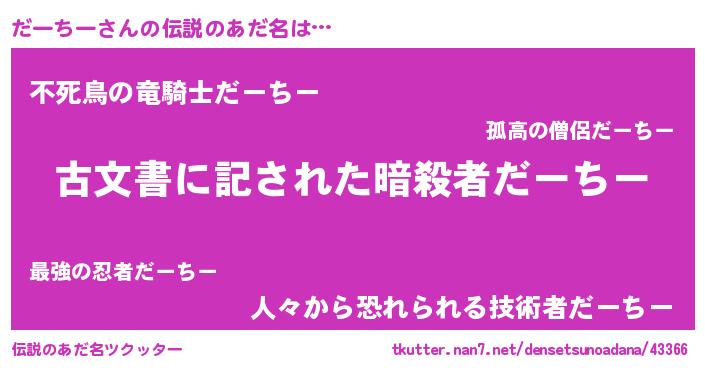 | ヒーロー風カッコイイあだ名 | 『仮面ダーダー』『ネオダーチー』 |
