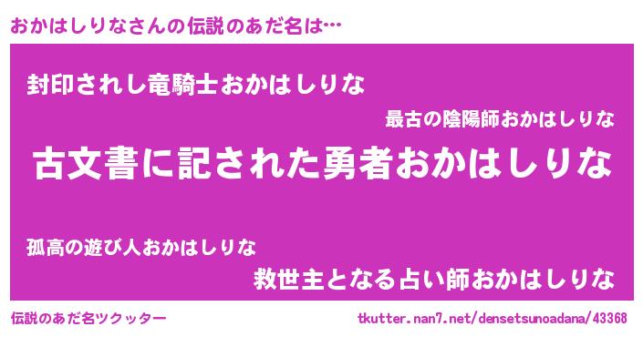 | 意味不明あだ名 | 『永久保存おかはしりな』 |