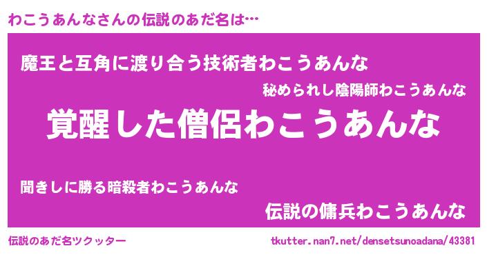 | 欧米人風あだ名 | 『ウサインわこうあんな』 |