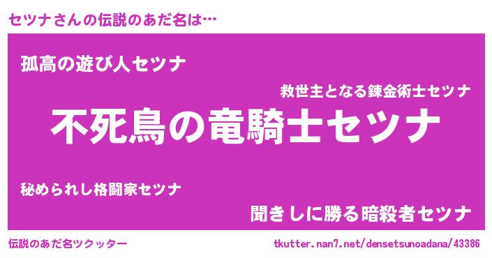 | 意味不明あだ名 | 『住所不定無職セツナ(7歳)』『自称セツナ』 |