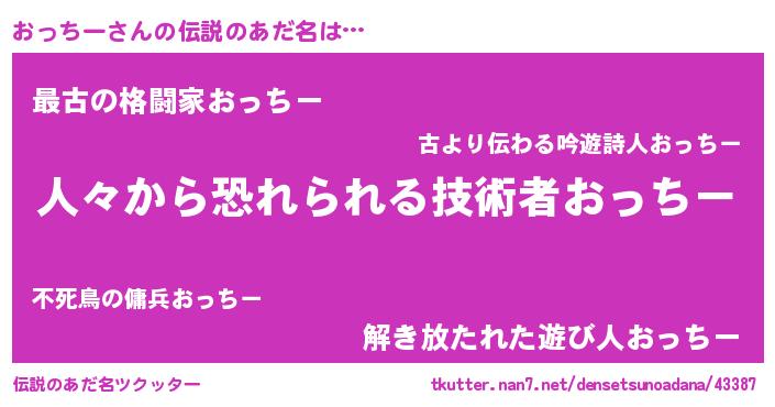 | ヒーロー風カッコイイあだ名 | 『正義の使者おっちー』『天弓騎士オッ』 |