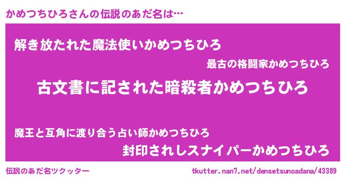 | ヒーロー風カッコイイあだ名 | 『ネオカメツチヒロ』『幻影騎士カメ』 |