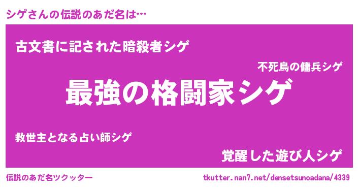 | 意味不明あだ名 | 『自称シゲ』『ヨモギ科シゲ属』 |