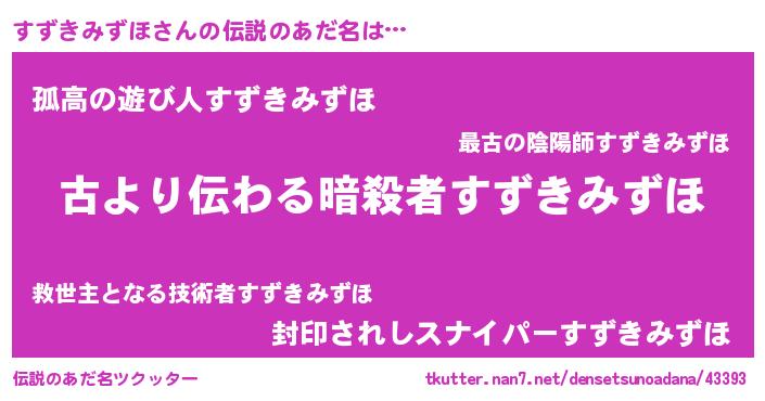 | 胡散臭い通販商品みたいなあだ名 | 『来世でも幸せになれる健康食品…その名も「すずきみずほ」』 |