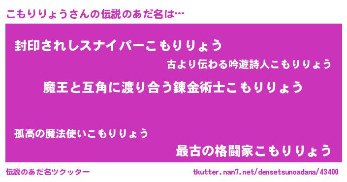 | 意味不明あだ名 | 『自称こもりりょう』 |