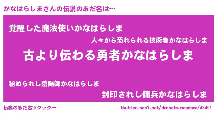 | 意味不明あだ名 | 『永久保存かなはらしま』 |