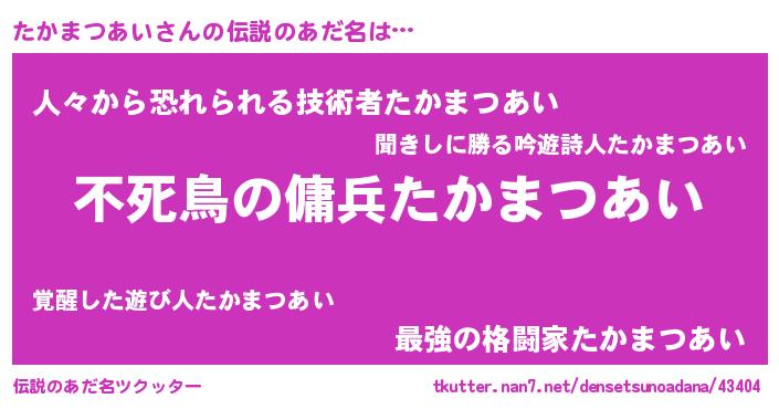 | 男性向けラノベタイトル風あだ名 | 『Re:たかまつあいから始める異世界生活』 |