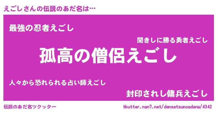 | 意味不明あだ名 | 『とにかく怪しいえごし』『自称えごし』 |